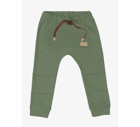 Perfektné tepláky pre malých mužov. Nielen do lesa ale na každodenné nosenie, pohodlné hranie v škôlke a na prechádzky. Doplnené o praktické predné vrecko klokanieho typu. V páse na stiahnutie šnúrkou a ukončené manžetami, aby sa nevyťahovali.