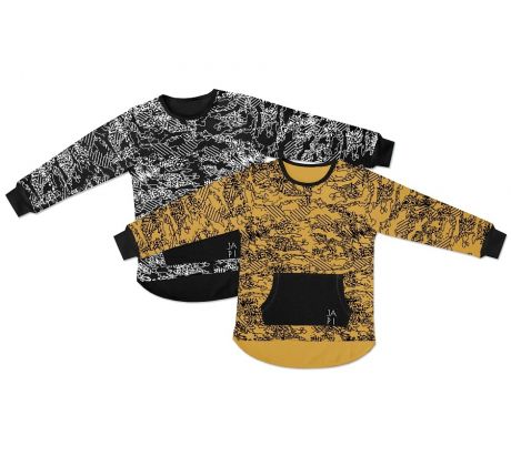 Štýlové predĺžené tričko s potlačou . V predu funkčné vrecko.