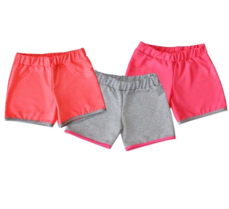 Žiarivé neónové krátke nohavice s vreckami po pokoch a jedným vreckom v zadu. Pás je na gumičku, šnúrka je len dekoračná.