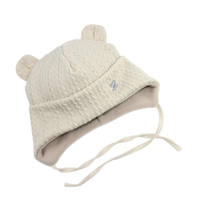 Dvojvrstvová zimná čiapka na viazanie s lemom a rozkošnými uškami.