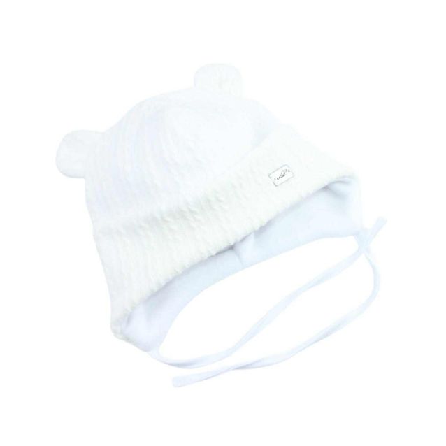Dvojvrstvová zimná čiapka na viazanie s lemom a rozkošnými uškami.
